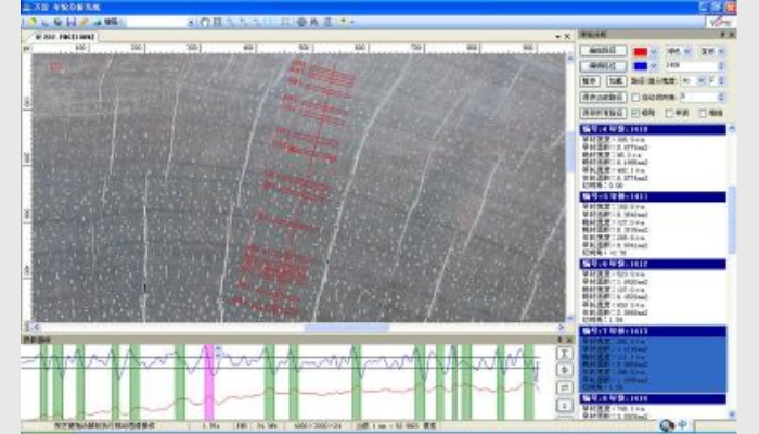 (3)具有【精細】分析選項,可自動分析出≤0.2mm寬度的年輪,分析獲得的測量數(shù)據(jù)具備進一步做交叉定年、數(shù)據(jù)分析處理能力。