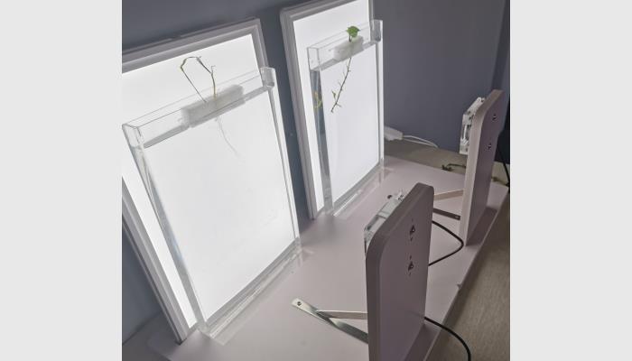 2、實時監(jiān)測4個視野的水培作物植株,標配4套動態(tài)生長監(jiān)測拍照成像硬件(含4個240mm 寬*380mm高的透明培養(yǎng)扁盒)。
