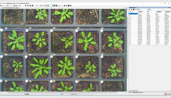(8)其它:不同生長時期自動批量化處理分析,多植株網(wǎng)格分析,直線、角度等幾何測量,各測量結(jié)果可編輯修正。